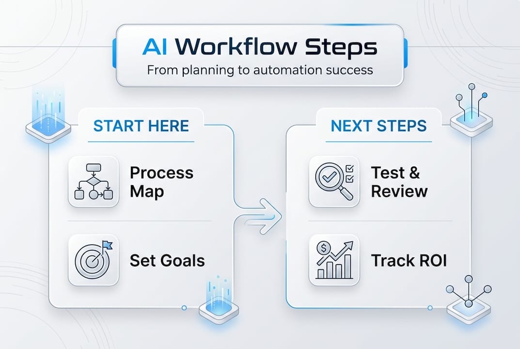 | Measure your impact | Tracking efficiency, errors, and adoption shows the ROI of AI workflows. |