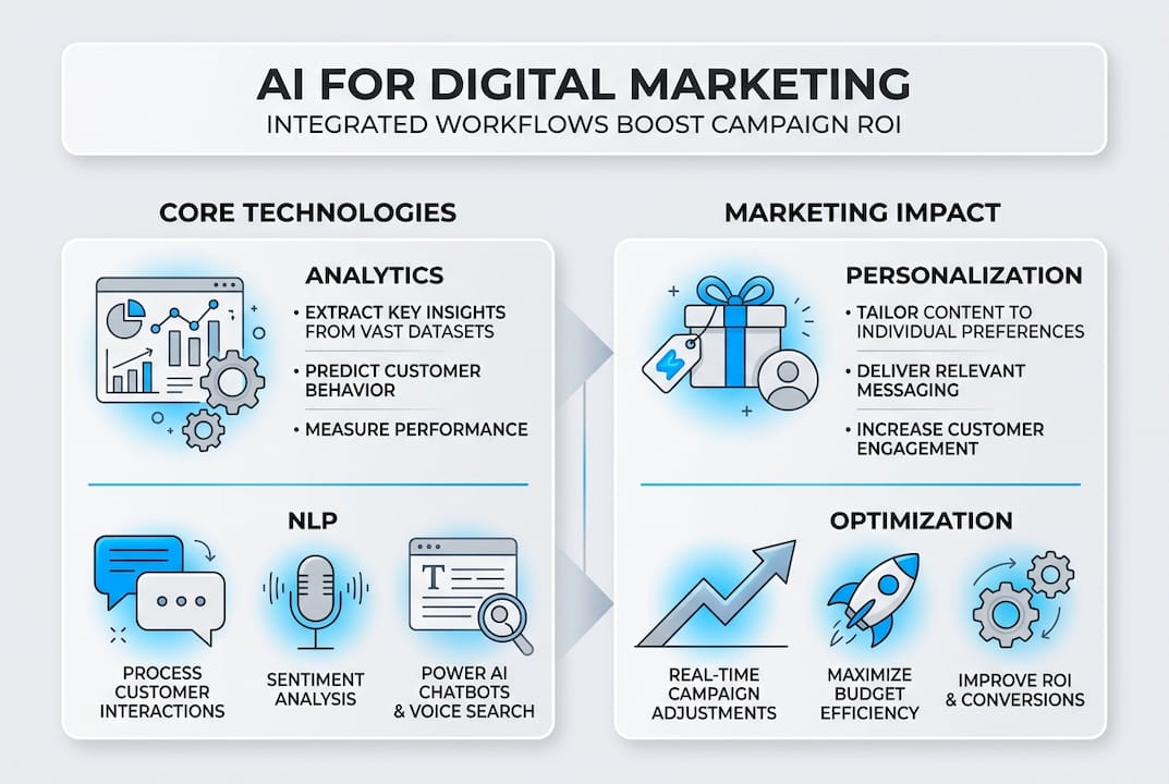 Many marketing professionals believe AI will completely replace human marketers, automating every campaign decision from strategy to execution. This misconception overlooks AI's true value as a powerful augmentation tool rather than a replacement. AI enhances digital marketing by processing vast datasets, predicting customer behavior, and optimizing campaigns in real time, but it still requires human creativity, strategic thinking, and oversight to deliver meaningful results. This guide explores how AI core mechanics in digital marketing include predictive analytics, natural language processing, and machine learning for forecasting outcomes, content generation, and audience targeting. You'll learn practical implementation steps, common pitfalls to avoid, and strategies for measuring AI's impact on your marketing ROI.
